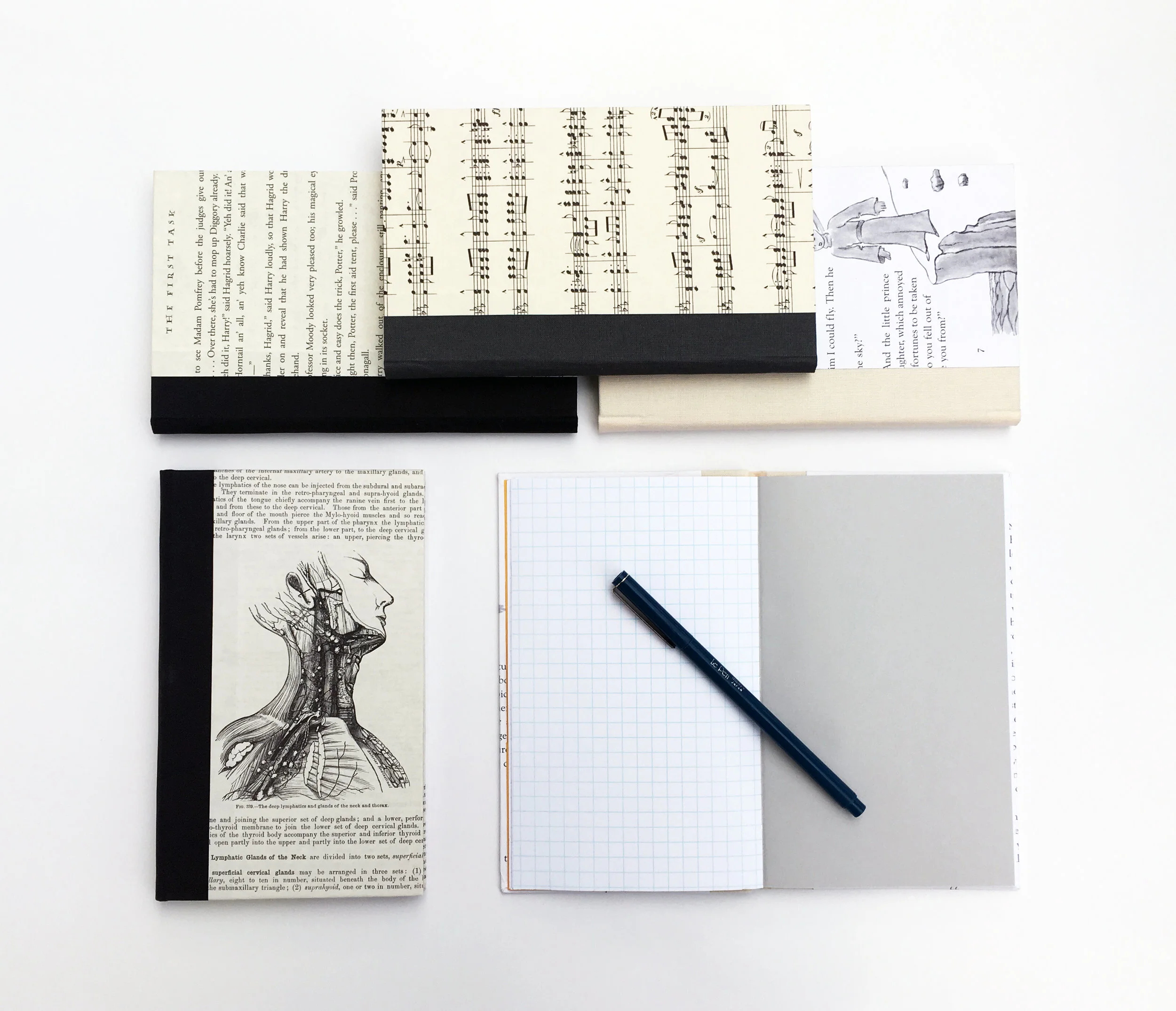 In the style of our original line of rebound books, have your favorite book turned into a one-of-a-kind sketchbook - just send us the book, and we'll do the rest. Alternatively, we'll hunt down a copy of your desired title for you. We can also bind a sketchbook completely from scratch using new materials.